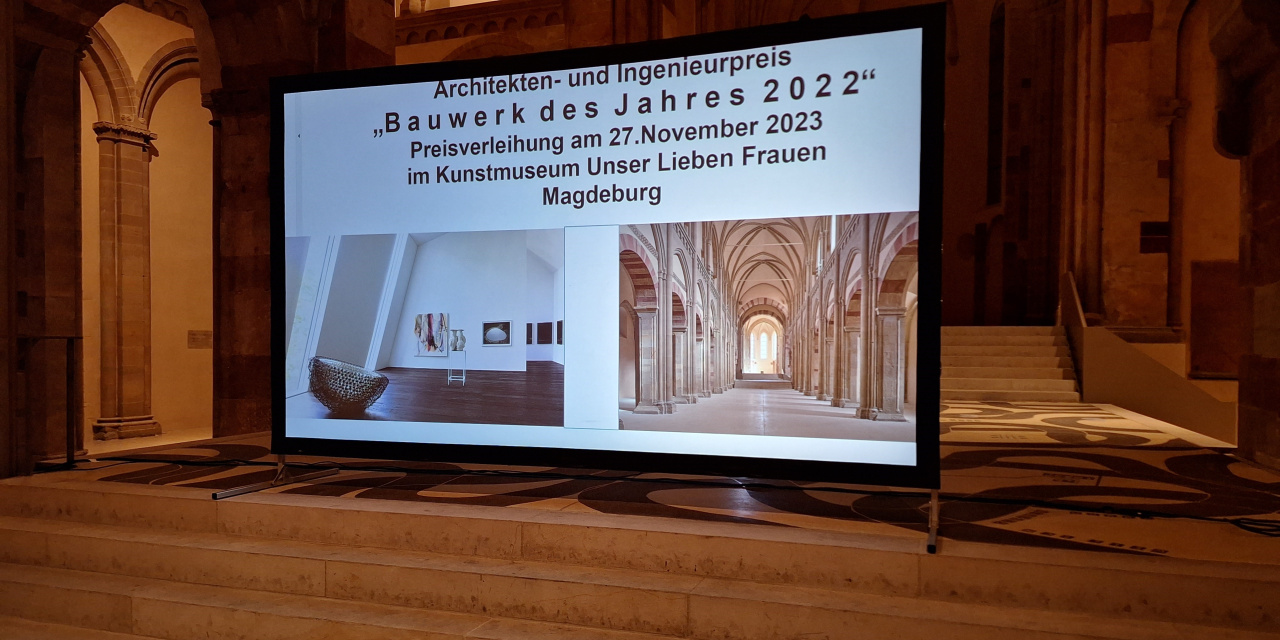 Für die Ergebnisse unserer zwei Jahrzehnte umfassenden Zusammenarbeit mit dem Kunstmuseum Kloster Unserer Lieben Frauen in Magdeburg wurde uns insbesondere für die Sanierung der Klosterkirche sowie den Neubau der Ausstellungsräume im Nordflügel der Preis „Bauwerk des Jahres 2022“ durch den Architekten- und Ingenieurverein zu Magdeburg von 1876 e.V. verliehen. Wir freuen uns sehr und sagen: Vielen Dank!