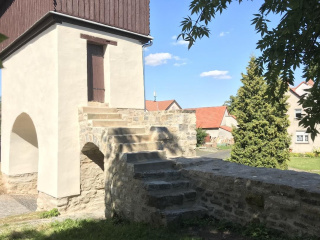 Die anliegende Pforte und Freitreppe wurden wieder hergestellt, Risse und statische Probleme beseitigt, Turm und Dach instandgesetzt. Schließlich wurde der neu verschieferte Dachreiter mit Kugel und Wetterfahne nach historischem Vorbild bekrönt. In der neu gepflasterten Toreinfahrt lädt nun eine Bank Kirchenbesucher wie Wanderer auf dem Unstrut-Werra-Radwanderweg zum Verweilen ein.