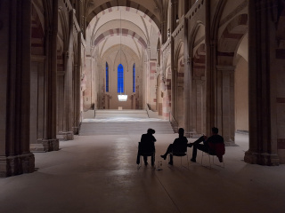 Bis spät in die Nacht haben wir das Einleuchten in der Klosterkirche des Kunstmuseums Magdeburg begleiten dürfen. Die Vierungsleuchte wurde hernach auf die richtige Höhe gebracht. Vielen Dank an Anke Augsburg und Markus Ruge. Es war ein großes Vergnügen! Wir freuen uns über wunderbares Licht in einem bezaubernden Raum.