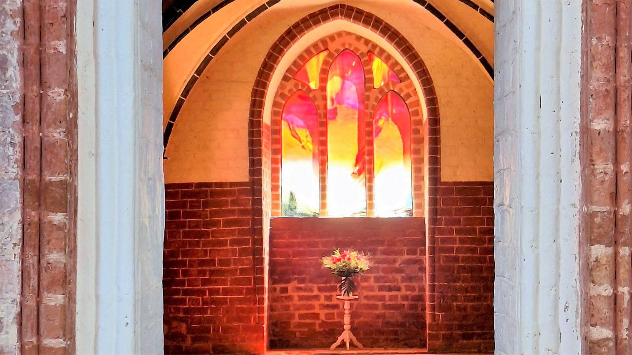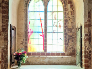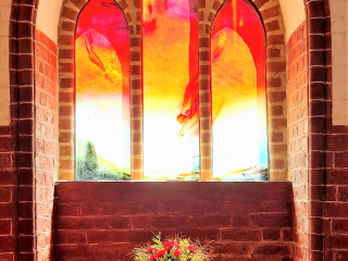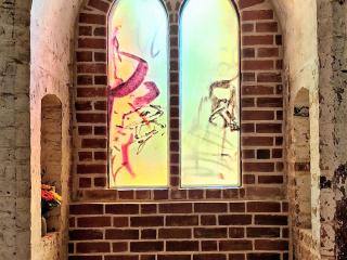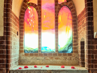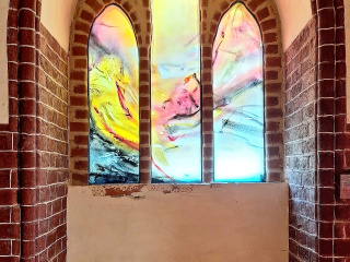 In pfingstlichem Licht erstrahlen die neuen Fenster von Leiko Ikemura. Rot prägt die Wunderblutkapelle, Gelb/Gold die Sakristei und Blau deren Vorraum mit Piscina. Glas und Farben werden durch das Licht lebendig. Abstraktes und Gegenständliches verbinden sich, große Weite trifft auf Konkretes. Die Kapelle wird zum Ort der Reflektion; die Sakristei hat Teil am Glanz der aufgehenden Sonne; im Blau des Wasserfensters spiegeln sich Kosmos und Ewigkeit.