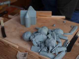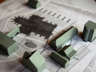 Apropos Perspektivwechsel: Zur Klärung von Detailfragen und Zusammenhängen bewährt sich regelmäßig der traditionelle Modellbau – ob in Pappe, Modelliermasse, Styrodur oder Holz. Die nachfolgenden Fotos entstanden im April 2016, als uns Reinhard und Margret Rüger beim Modellbau für die Wunderblutkirche in Bad Wilsnack unterstützten.