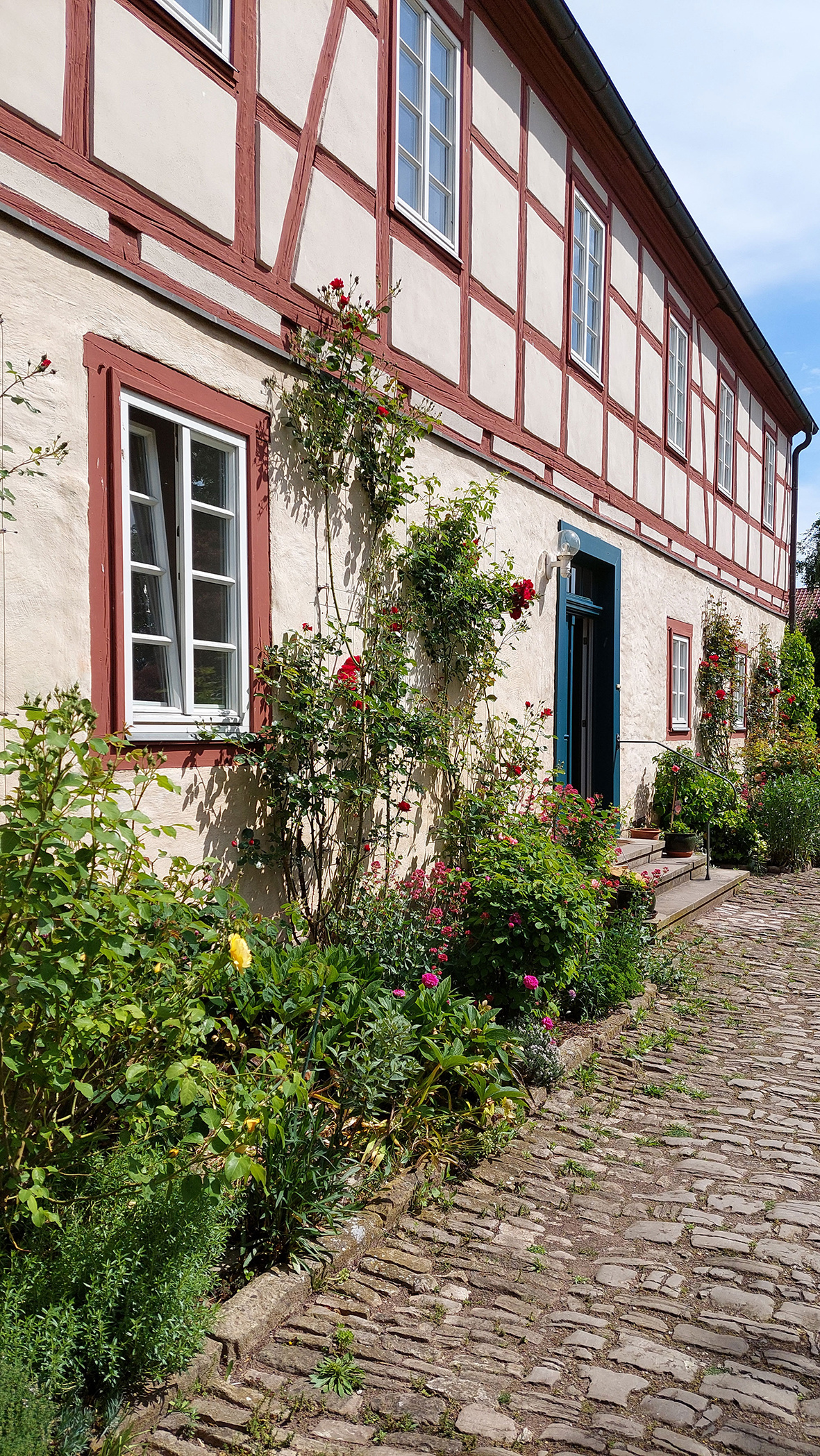 Heute – das Foto entstand im August 2020 – ist der Birkenhof ein Schmuckstück; wir nutzen alle Gebäude und den schönen Garten für unser Denkmal-Büro.