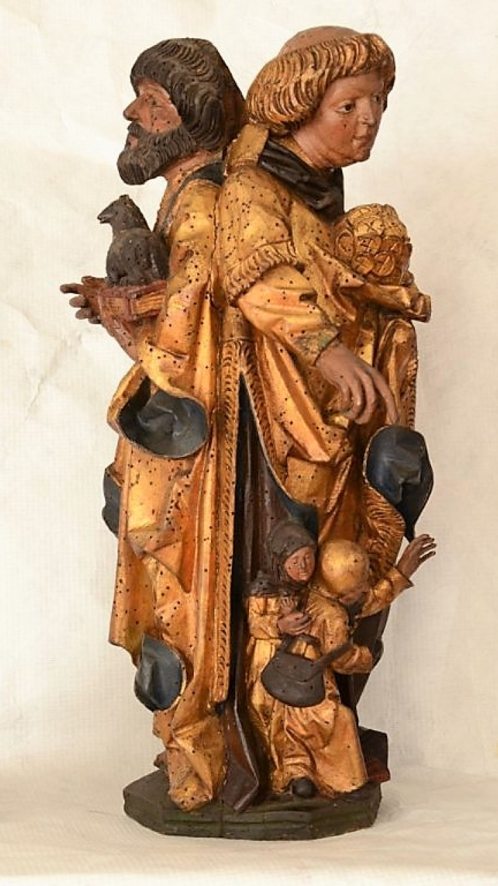 Die Radkrone wurde abgenommen, die Metallbestandteile wurden an eine Berliner Firma zur Restaurierung übergeben. Die hölzerne Doppelfigur – das Werk eines Leipziger Meisters – wurde vom Restaurator der Vereinigten Domstifter, Friedhelm Wittchen, bearbeitet. Bei der Untersuchung stellte sich heraus, dass das ungewöhnlich schöne Stück einschließlich Fassung vollständig original erhalten ist. So beschränkten sich die Arbeiten auf eine vorsichtige Reinigung mit Terpentin.