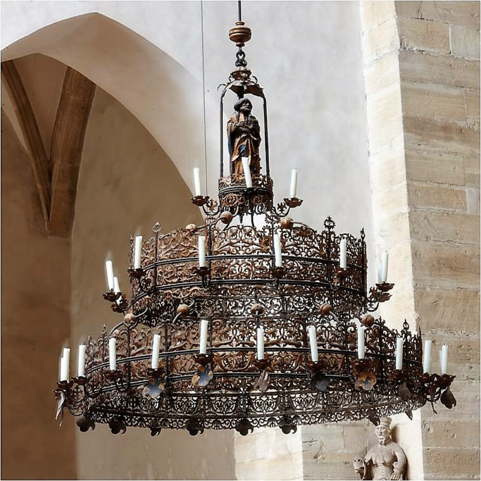 Übrigens wurde auch kurz erwogen, den Leuchter zu elektrifizieren, um Verschmutzungen durch Wachsreste zu vermeiden. Stattdessen kommen nun einfache Tropfschalen aus transparentem Kunststoff unterhalb der Kerzen zum Einsatz.