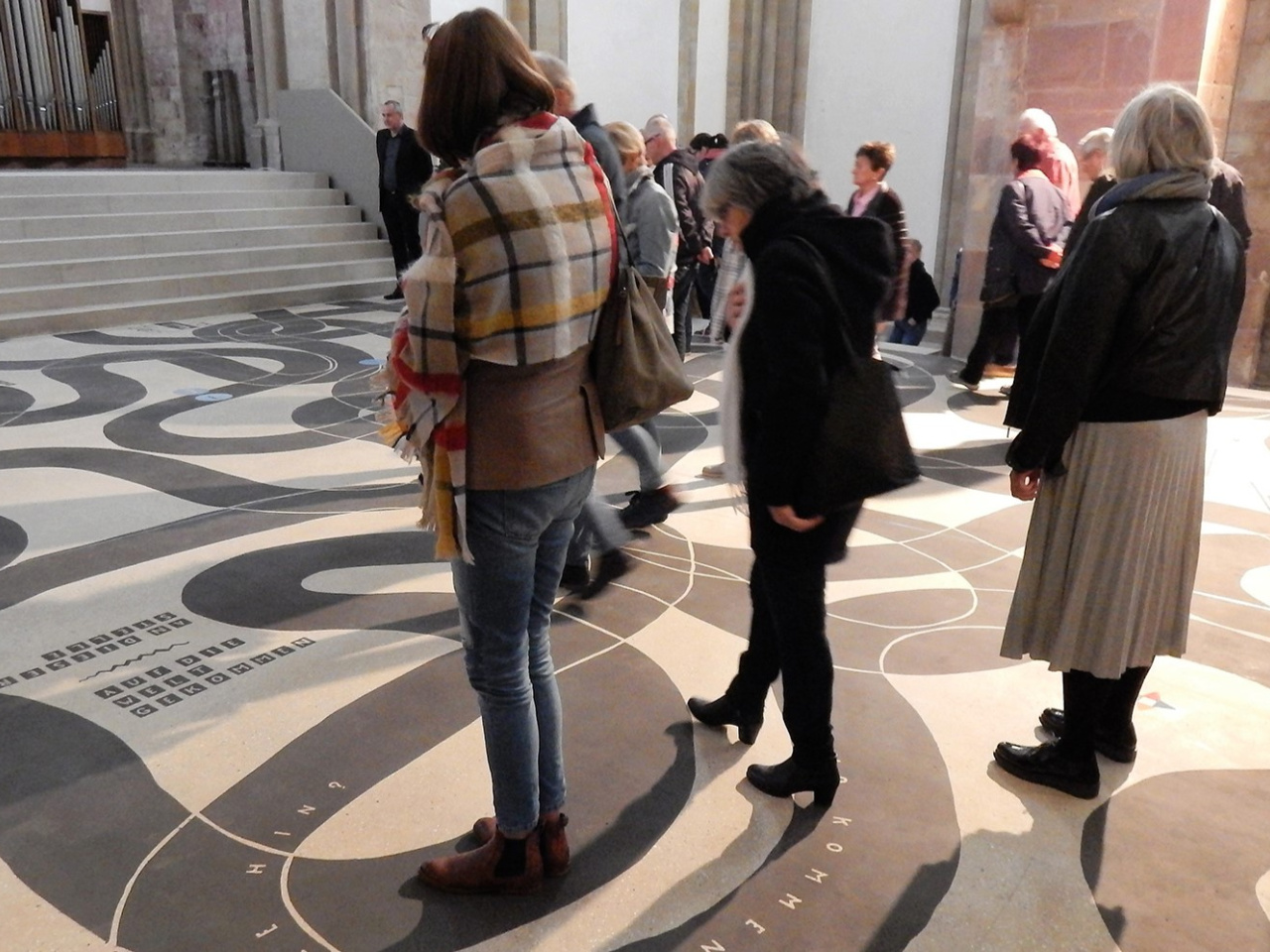 Zusätzlich erhielt der Sichtestrich in der Vierung mittels Inkrustierung in historischer Technik eine künstlerische Gestaltung. Der grafische Entwurf von Martin Assig greift Themen der ehemaligen Marienkirche und der Grablege des Hl. Norbert von Xanten auf. Die Umsetzung der einmaligen Bodenarbeit erfolgte durch die Firma Denkmalpflege Mühlhausen GmbH. Aus der fertigen Gipsoberfläche wurde Material wieder aufwendig herausgearbeitet und anschließend eine Grafik mittels durchgefärbtem Estrich eingelegt. Als Vorbild dieser Technik dienten historische Gipsestriche mit Bildwerken, die in der Harzgegend seit der Romanik in Kirchen – bspw. in der Klosterkirche Ilsenburg – verwendet wurden.